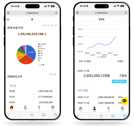 투자권유대행인을 위한 고객 자산 상태 실시간 모니터링과 실적 관리를 위한 체계적인 영업관리 지원 시스템.